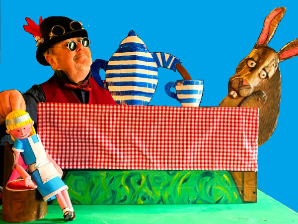 Listen and watch the Hatter as he tells the story of Alice's journey in Wonderland through puppets, beautiful painted scenery, music , song and of course hats!
